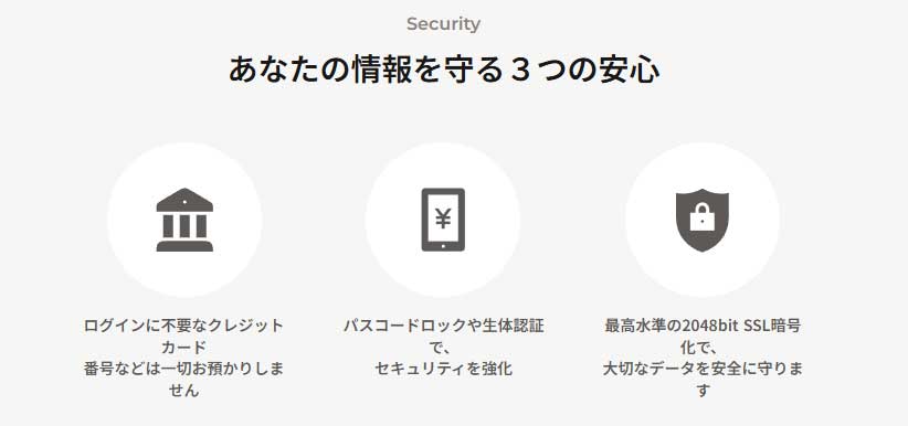 金融機関にアクセスするためのデータは全て暗号化して保存し、暗号化されたデータを保存するサーバーへのアクセスについては制限を設け、厳重な管理、運用を行っています。