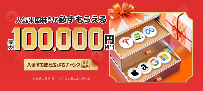 最大10万円相当の人気株をもらうことができます。(※特定の銘柄は選べません)